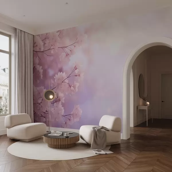 Fototapetak Sakura ágak rózsaszín virágokkal pasztell háttéren Nr. w03804