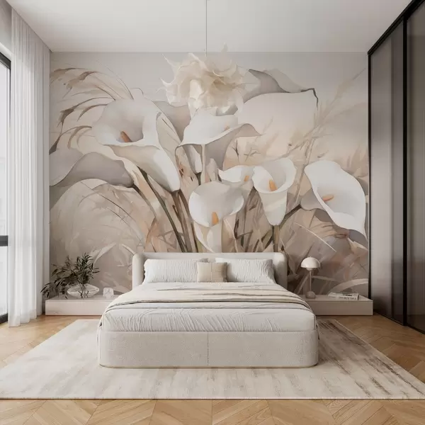 Fototapetak Kála liliomok száraz fűben vízfestmény utánzatban Nr. w03843v1