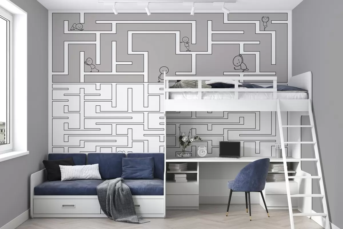 Fototapetak Labirintus szürke és fehér színben Nr. w03873v1