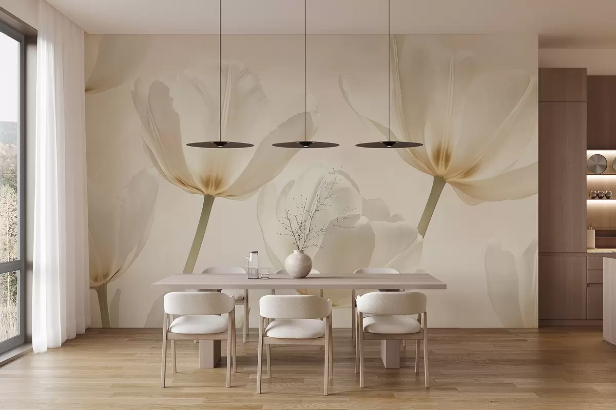 Fototapetak Gyönyörű tulipánok, virágos, bézs színek, realizmus Nr. w03877