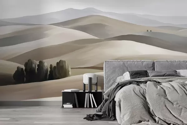 Fototapetak Tájképek fákkal, Toszkána, bézs és szürke színek, olaj stílusban Nr. w03880v1