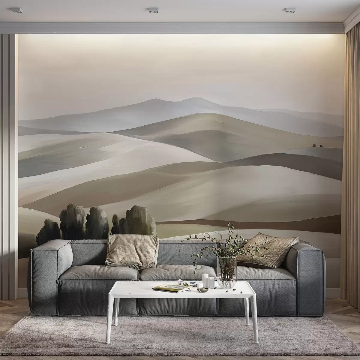 Fototapetak Tájképek fákkal, Toszkána, bézs és szürke színek, olaj stílusban Nr. w03880v1