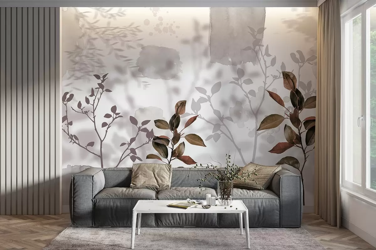 Fototapetak Citromfa levelek, faágak árnyék, természet, akvarell, természetfestmény Nr. w03910