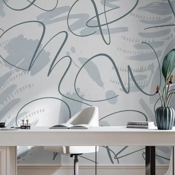 Fototapetak Kalligrafikus absztrakció betűkkel, ecsetvonásokkal, kék színnel Nr. w03913v1