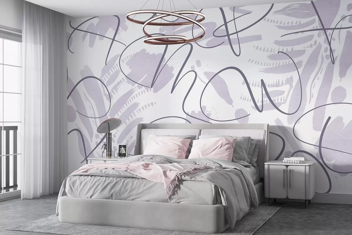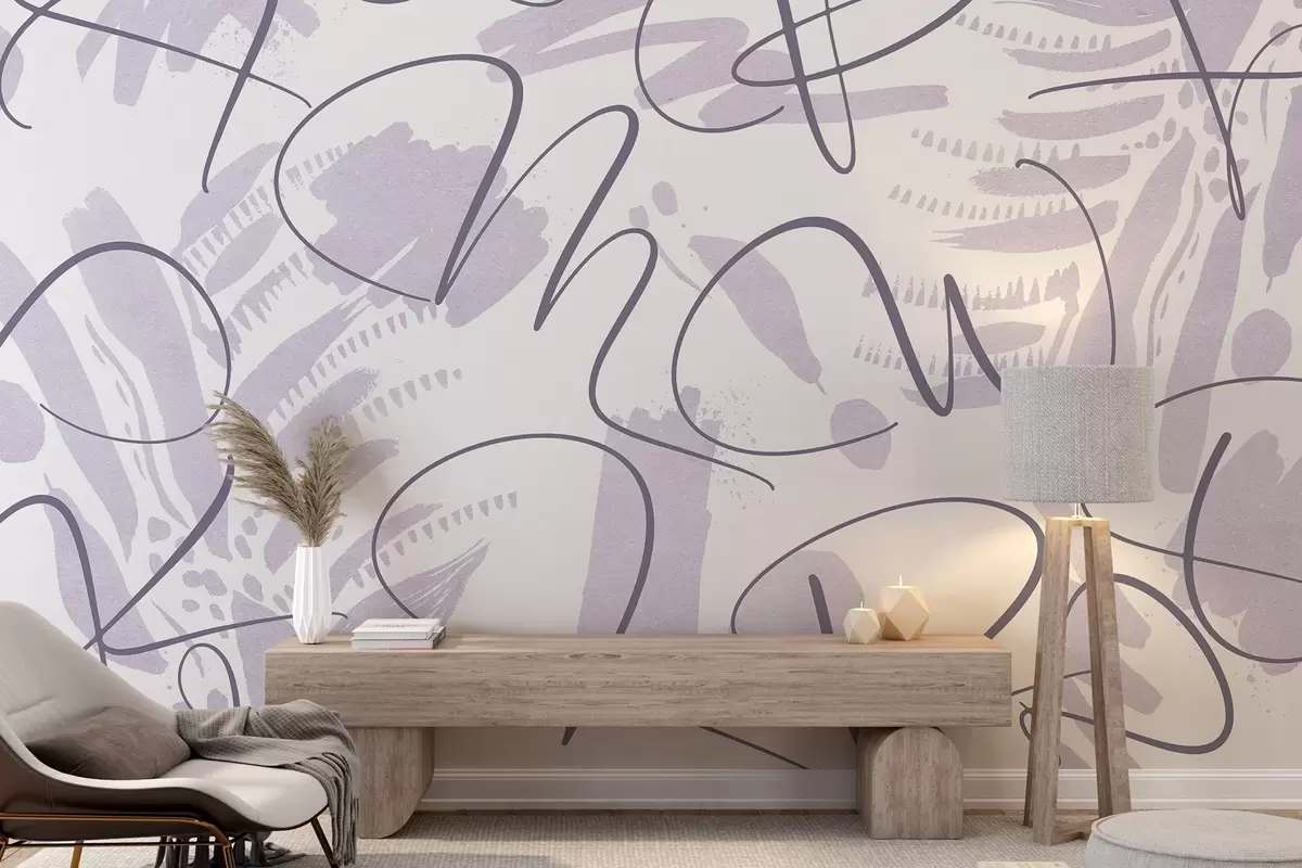 Fototapetak Kalligrafikus absztrakció betűkkel, ecsetvonásokkal, lila színnel Nr. w03913v2