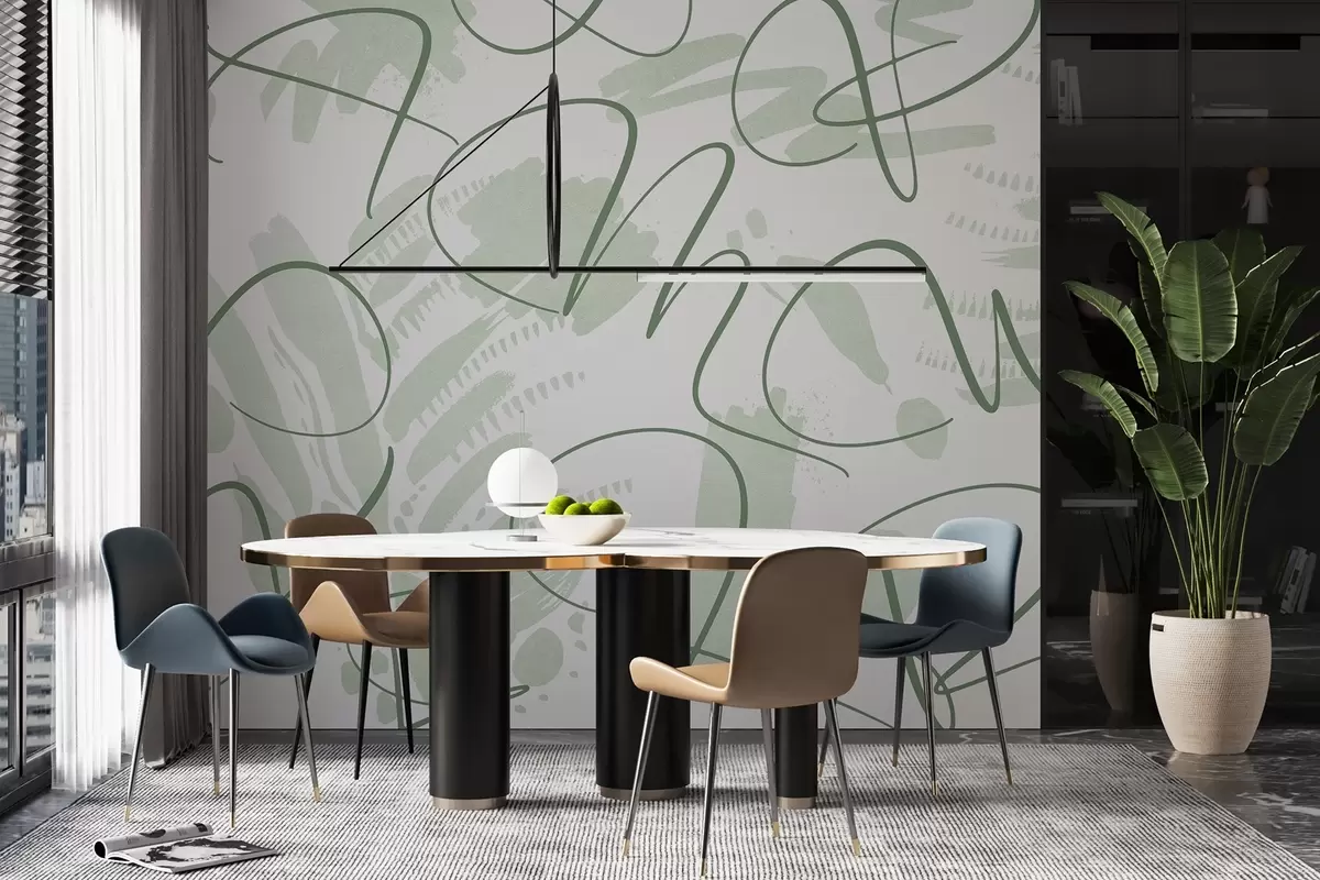 Fototapetak Kalligrafikus absztrakció betűkkel, ecsetvonásokkal, zöld színnel Nr. w03913v3