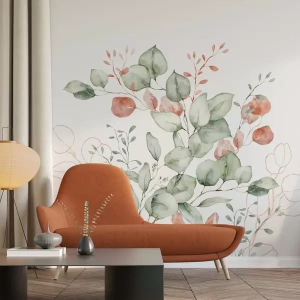Fototapetak Növényzet és ágak utánzata texturált akvarell, zöld és piros árnyalatai Nr. w03927v1