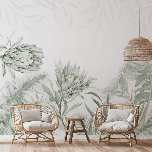 Fototapetak Protea trópusi levelek között, kék árnyalatokkal Nr. w03952v3