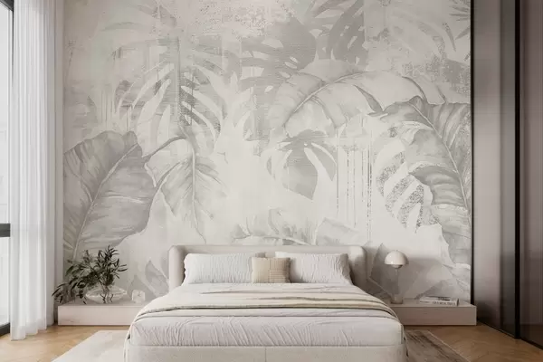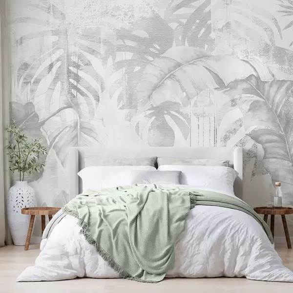 Fototapetak Trópusi levelek grunge stílusban, monokróm árnyalatokban Nr. w03956v1