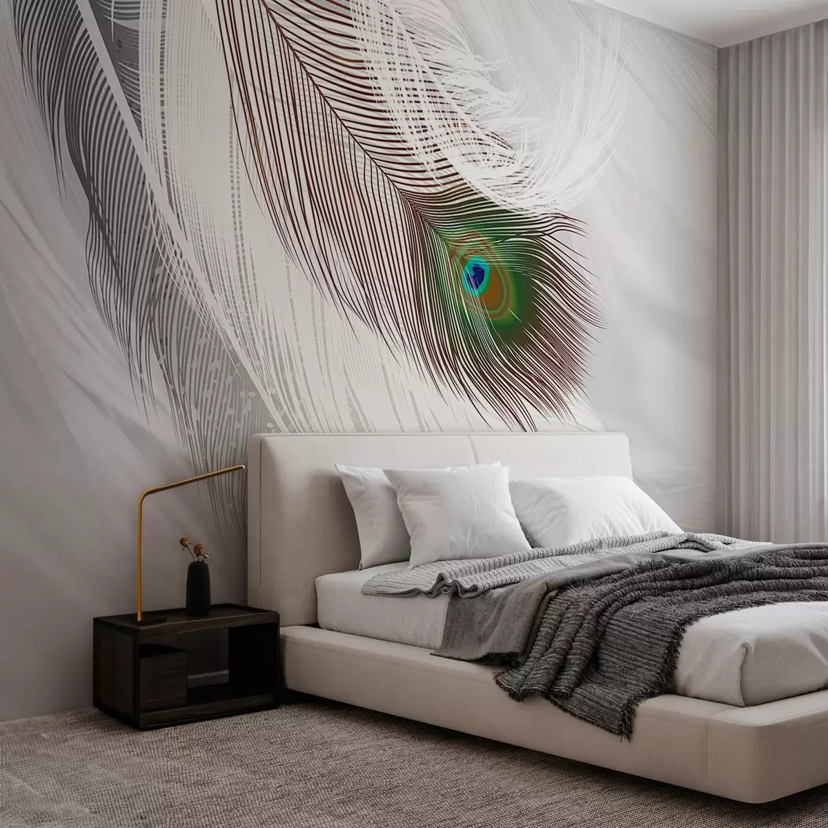 Fototapetak egy nagy pávatoll a tollak között Nr. w03961