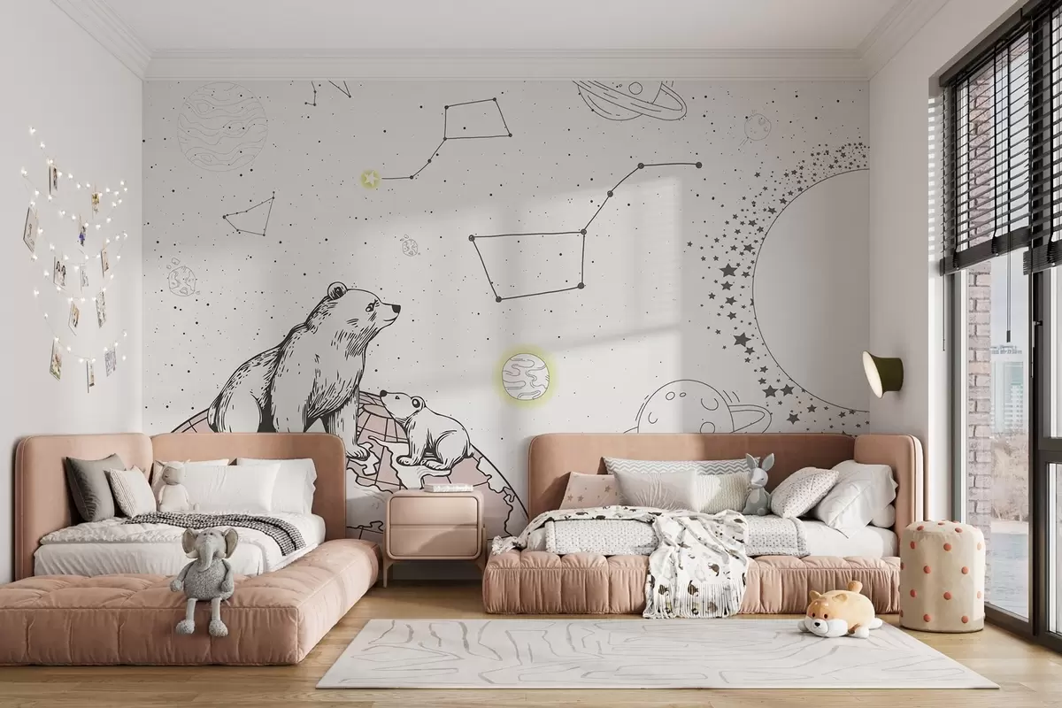 Fototapetak Medvék és csillagok barna háttéren, csillagászati téma Nr. w04002v2
