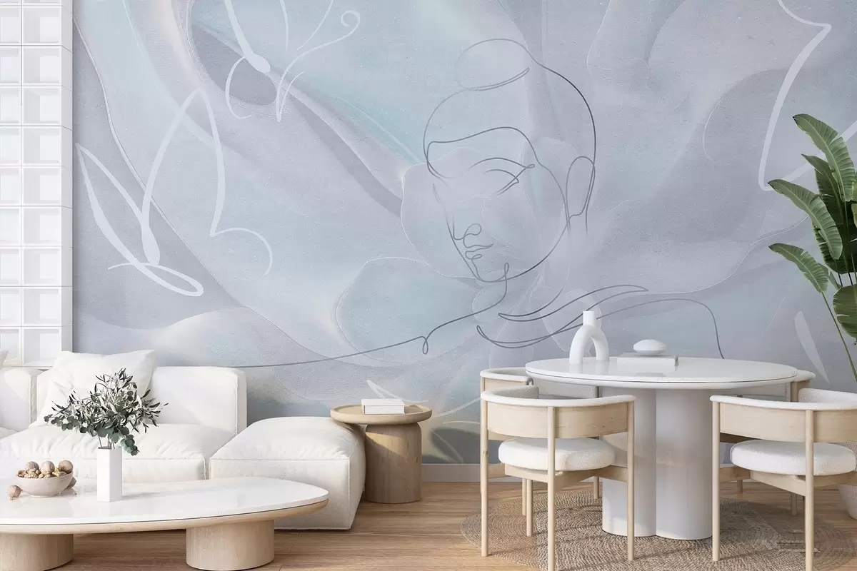 Fototapetak Virágos absztrakció Buddha vonalas rajz, kék színekkel Nr. w04004v1