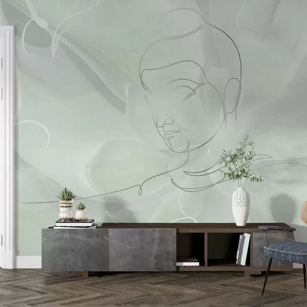 Fototapetak Virágos absztrakció Buddha vonalas rajz, zöld színekkel Nr. w04004v3