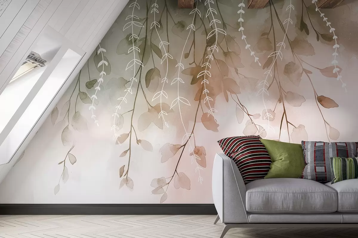 Fototapetak Ágak levelekkel akvarell stílusban, természetes őszi színekkel Nr. w04007v1