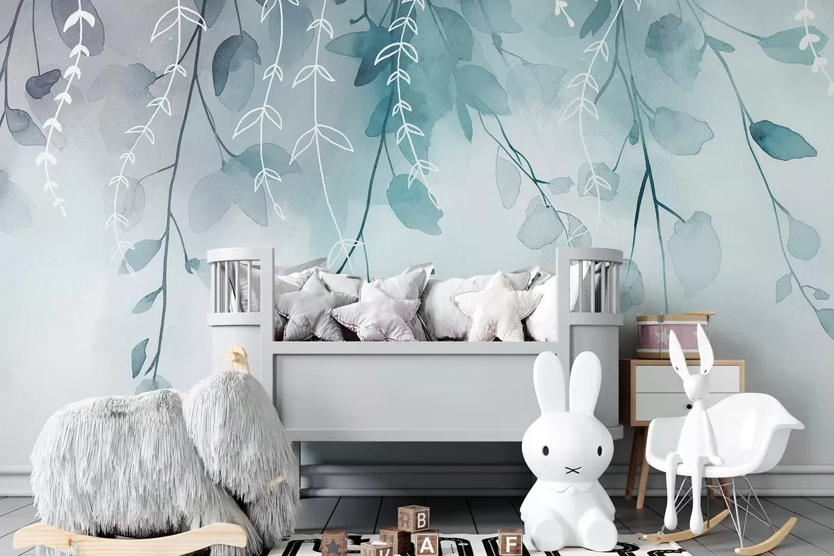 Fototapetak Ágak levelekkel akvarell stílusban, természetes akvamarin színekben Nr. w04007v3