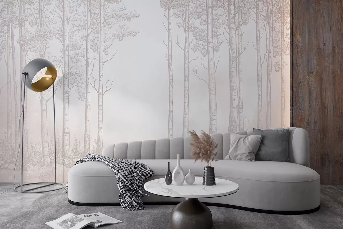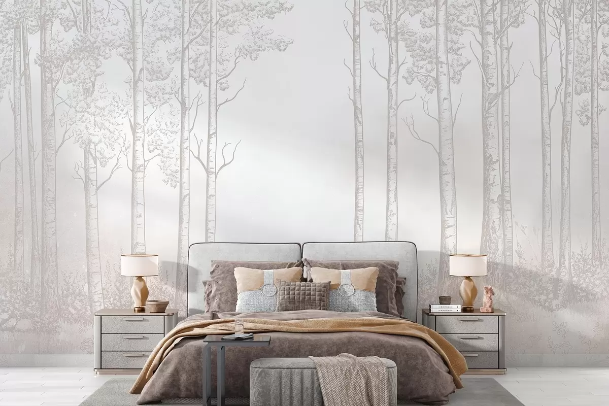 Fototapetak Erdő nyírfákkal, minimalizmus, természet, bézs színpaletta, bézs színpaletta Nr. w04009v3