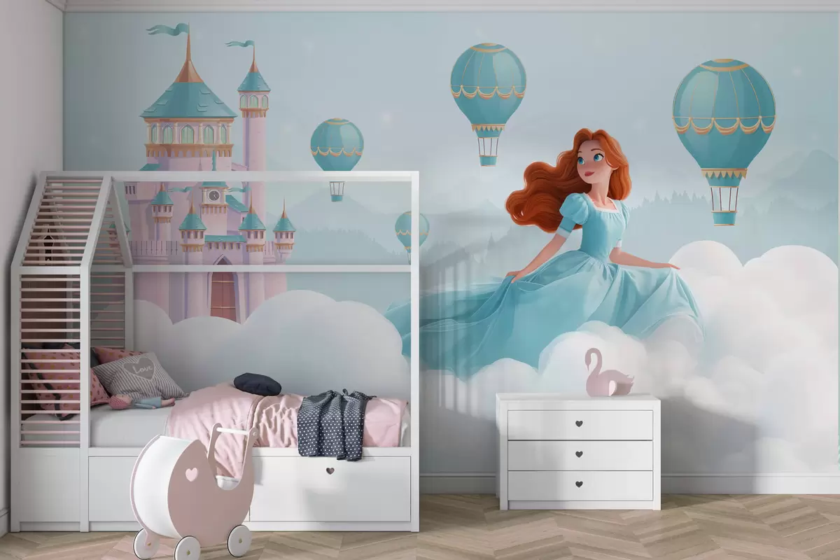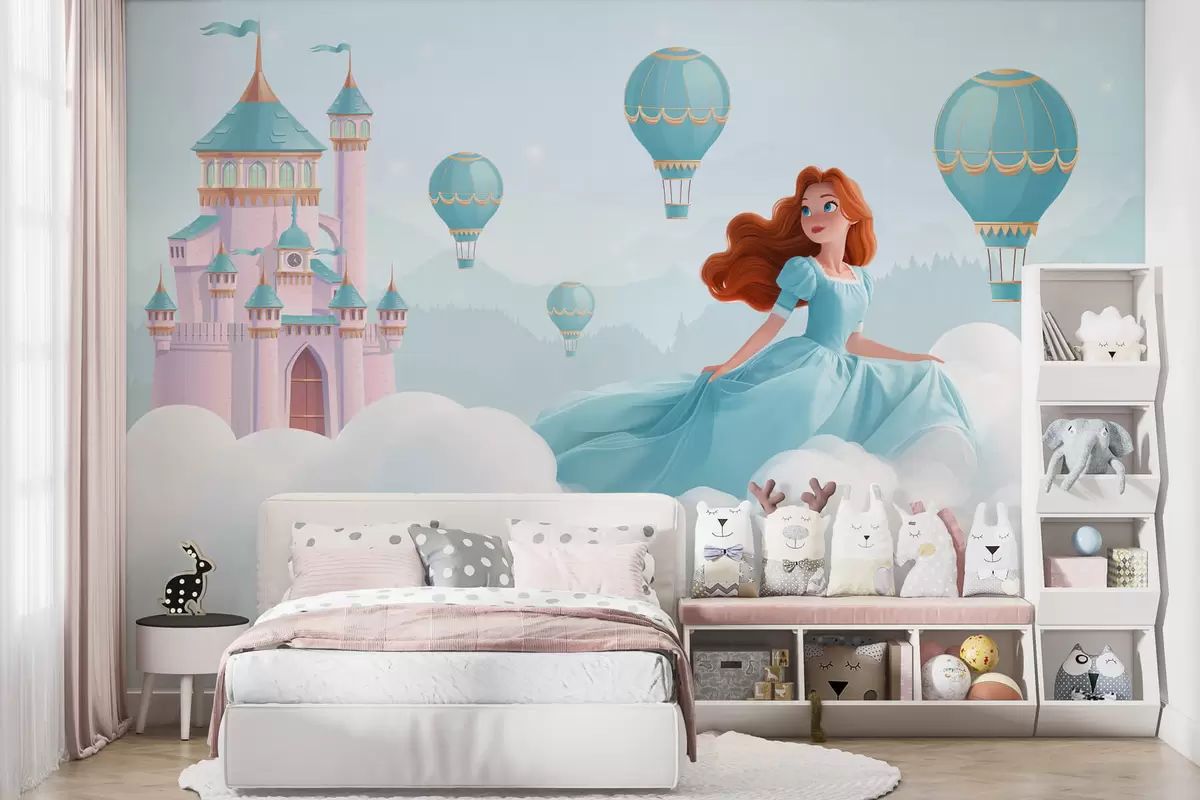 Fototapetak Hercegnő a felhők között a háttérben a táj a kastéllyal Nr. w04015