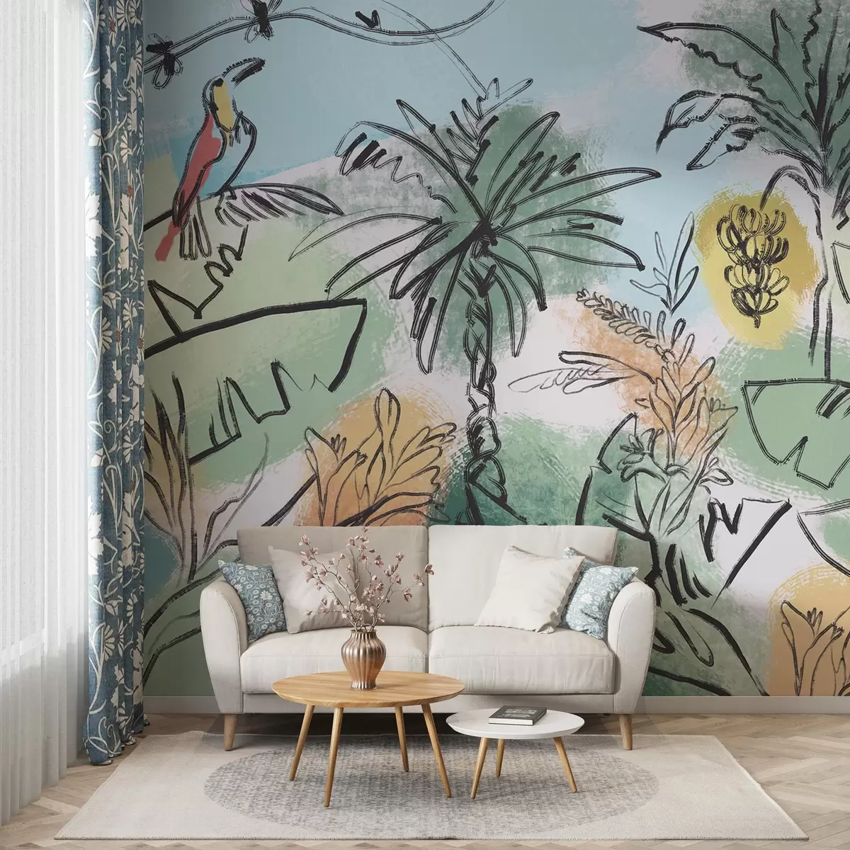 Fototapetak Trópusi nyomtatás papagájokkal, gazdag színek, trópusok Nr. w04019