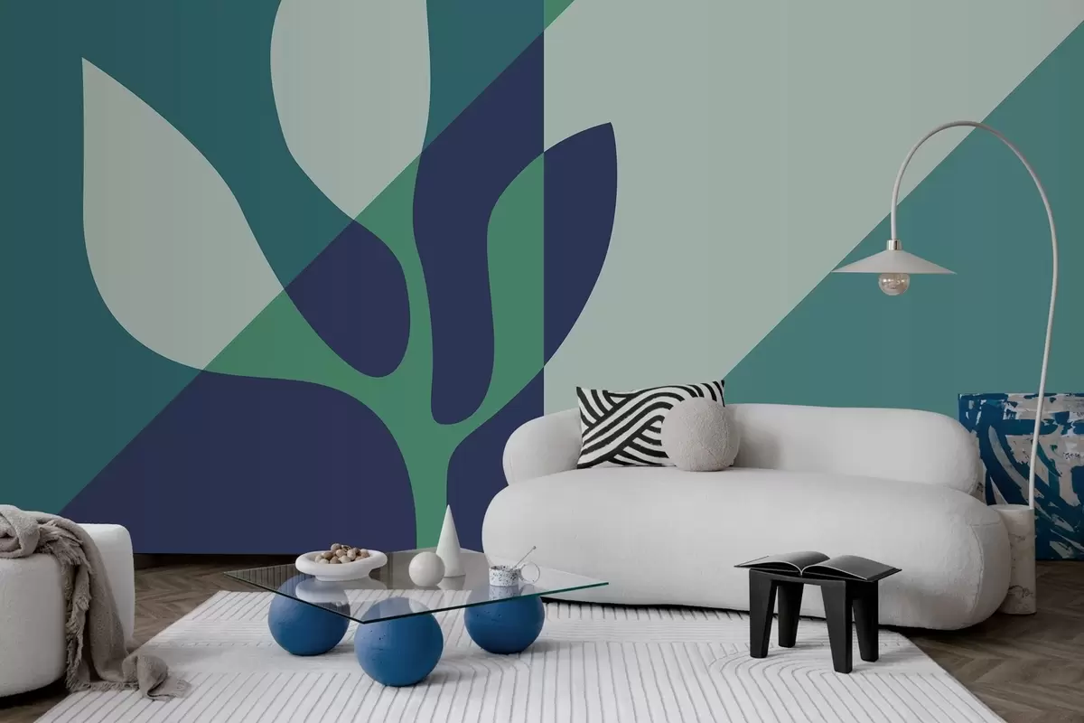 Fototapetak absztrakt grafikai növény a háttérben a geometria kék tónusú Nr. w04028v1