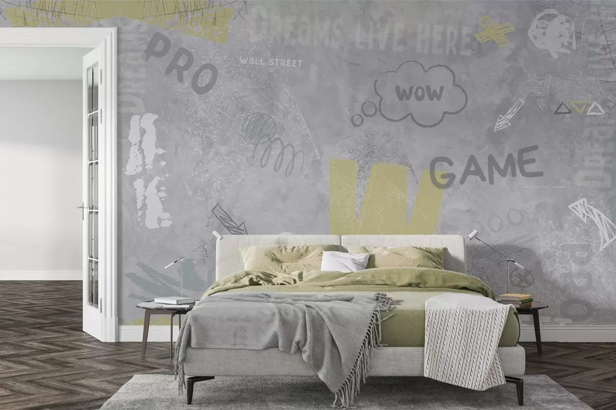 Fototapetak Design street art stílusban, sárga színű feliratokkal a betonfal hátterében Nr. w04056