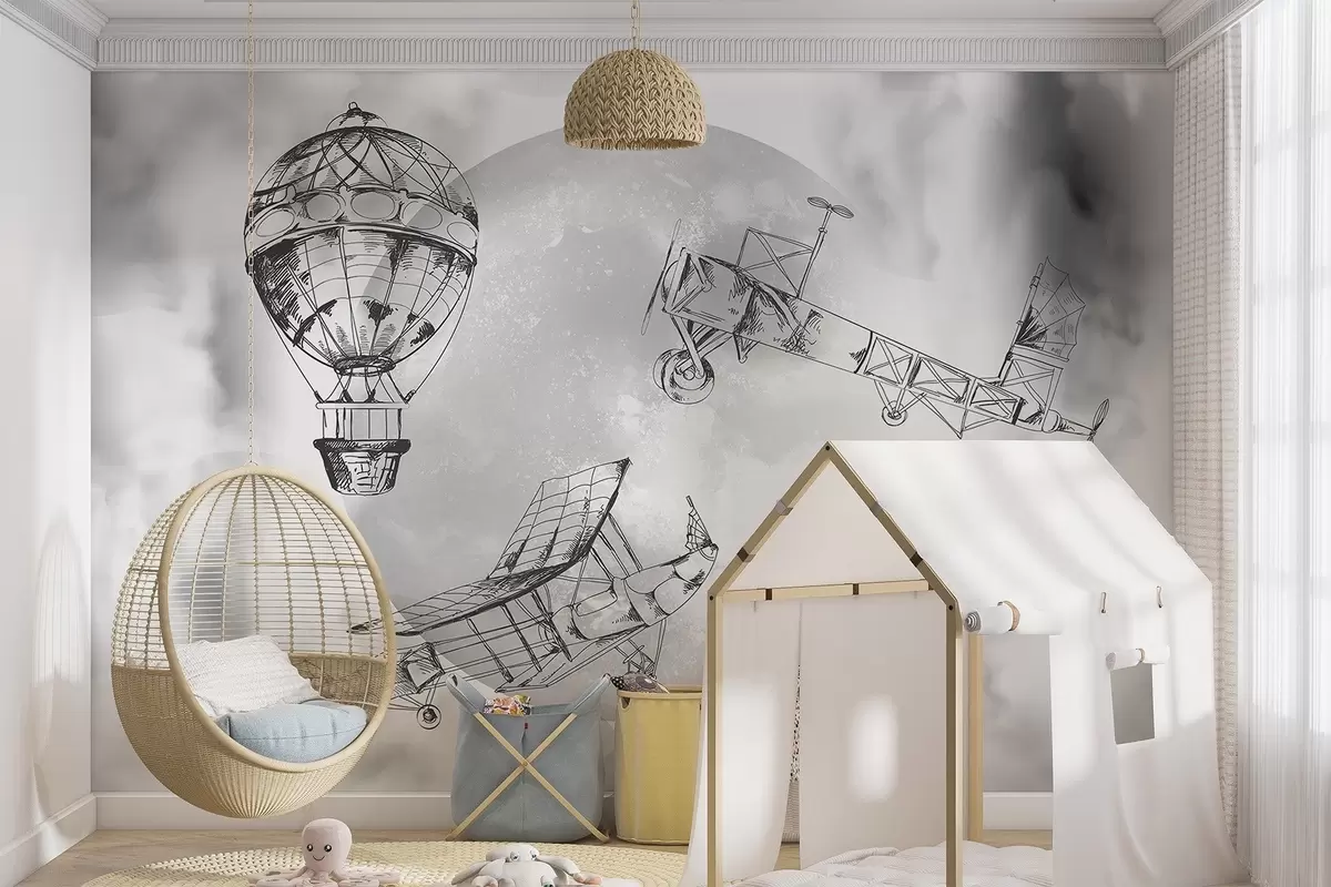 Fototapetak Retro repülőgépek a hold és a felhők hátterében Nr. w04085