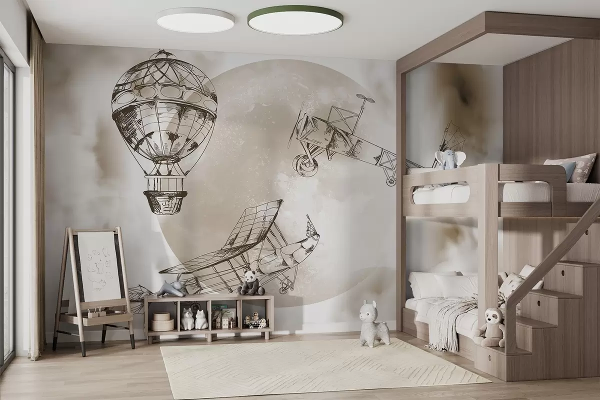 Fototapetak Retro repülőgépek a hold és a felhők hátterében Nr. w04085v1
