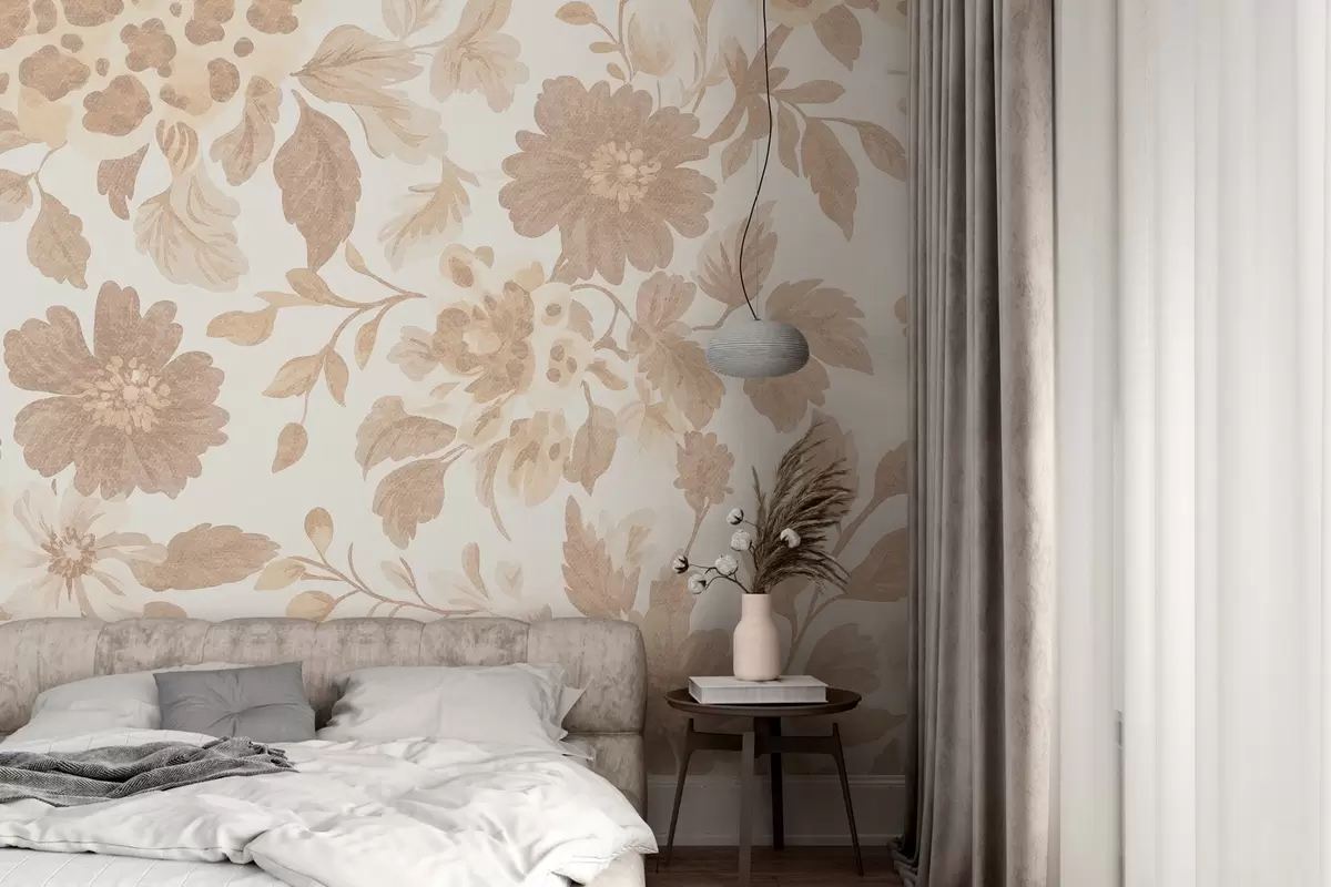 Fototapetak Boho stílusú virágok leopárd mintával, bézs színben Nr. w04114
