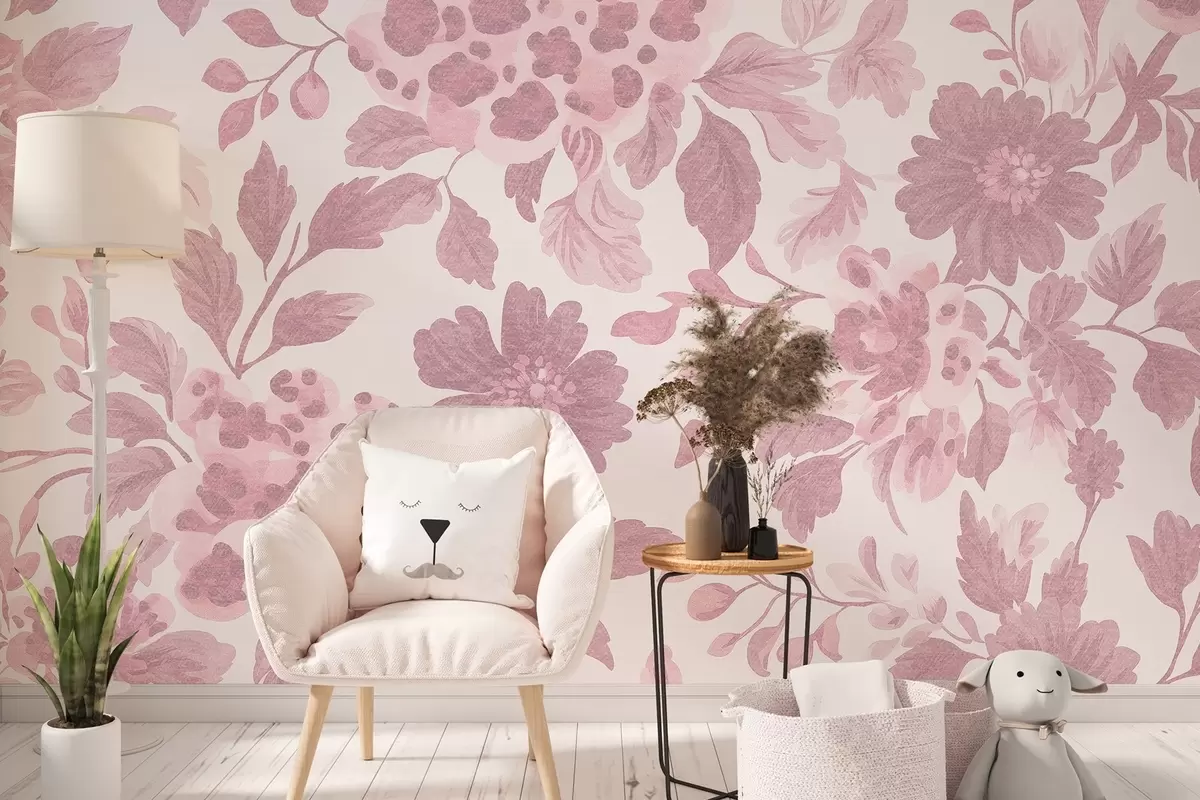 Fototapetak Boho stílusú virágok leopárd mintával, rózsaszín színben Nr. w04114v3
