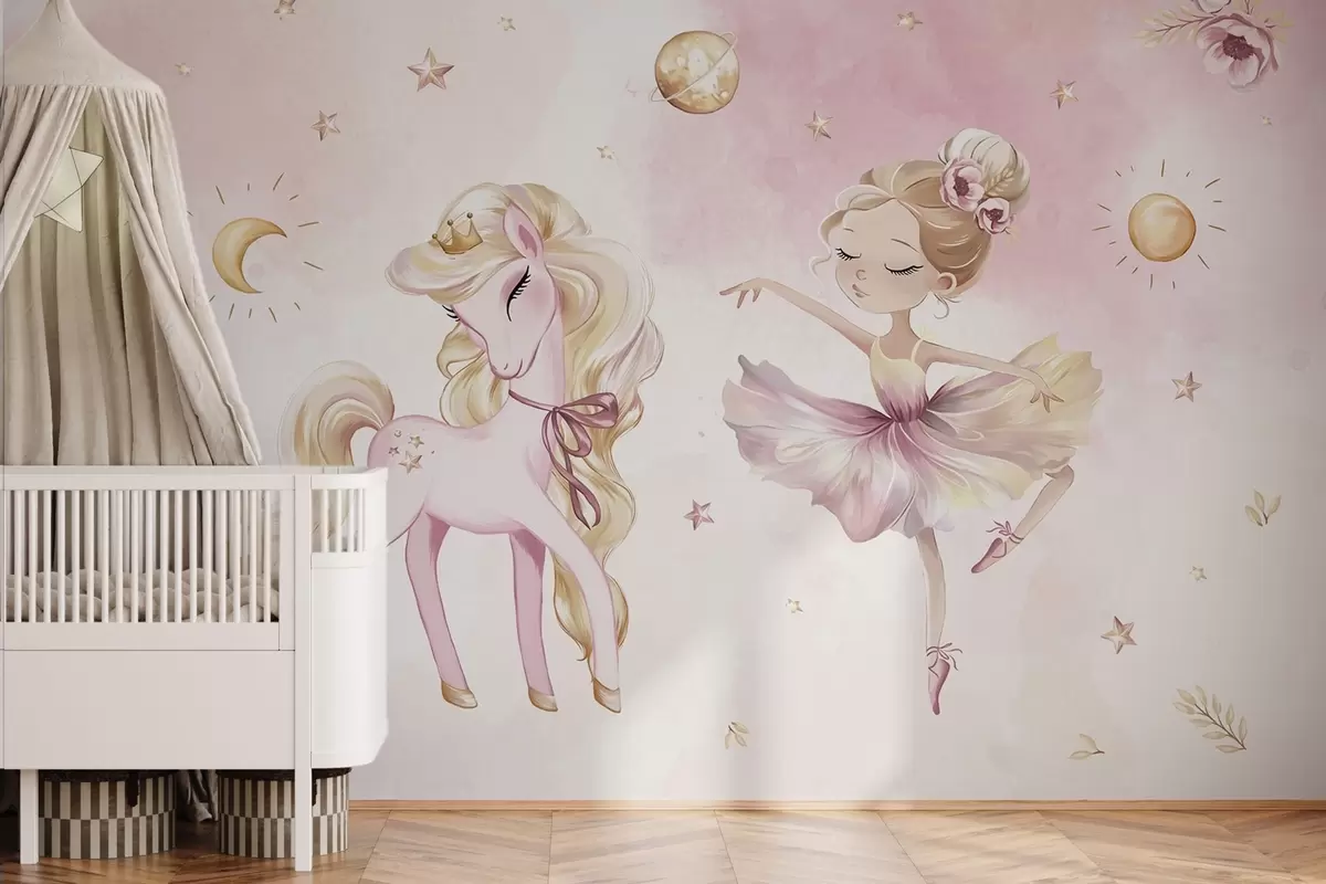 Fototapetak Egyszarvú és balerina egy rózsaszín tündérmesében, gyermekmese Nr. w04196