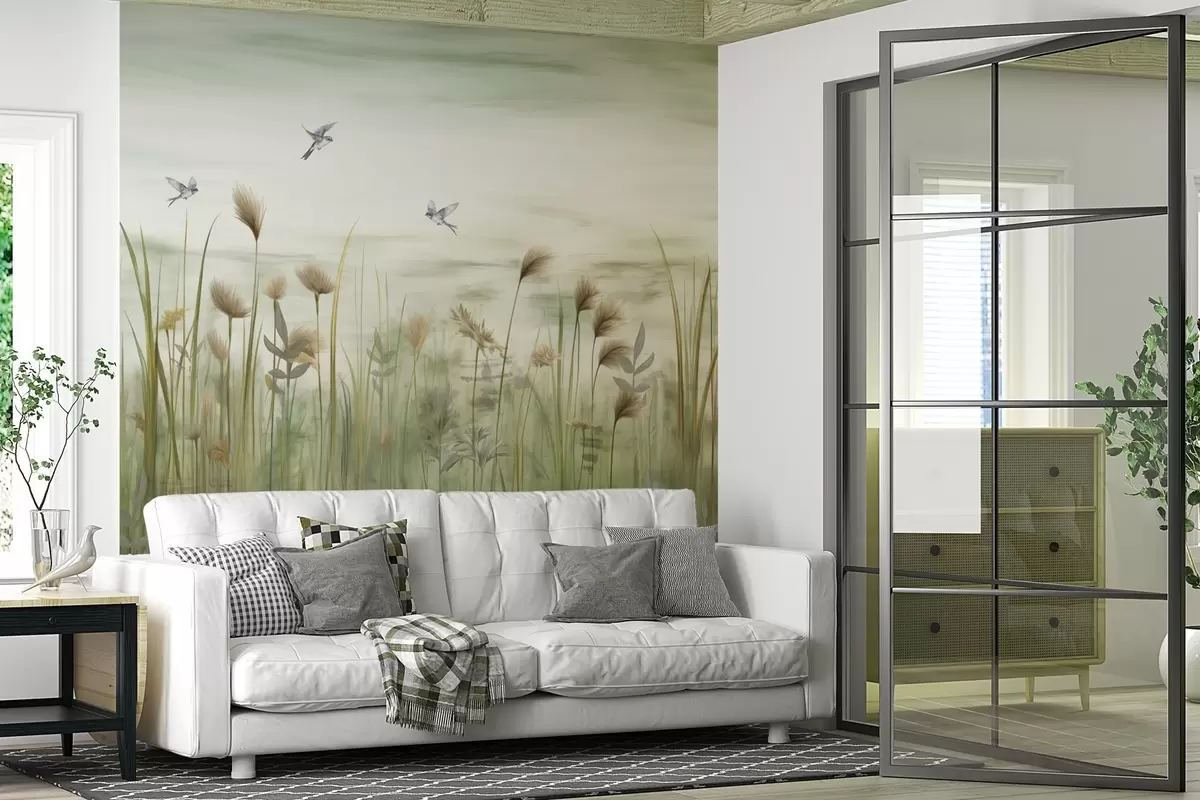 Fototapetak Füves táj fecskékkel a lágy égbolton Nr. w04258v1