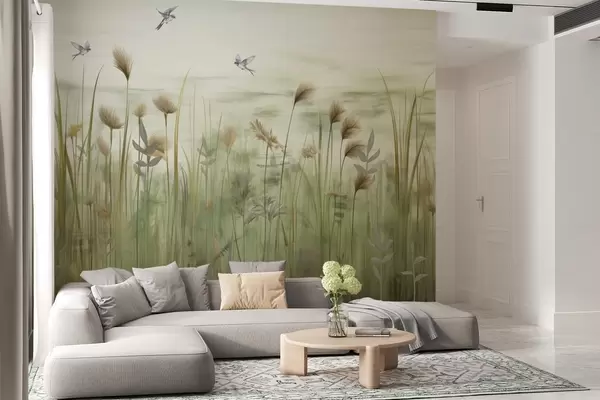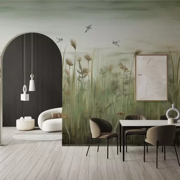 Fototapetak Füves táj fecskékkel a lágy égbolton Nr. w04258v1