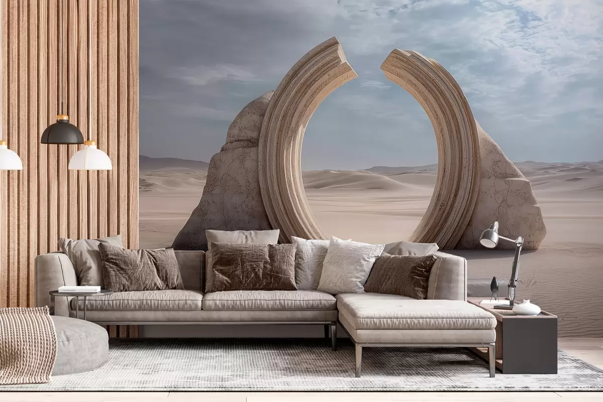 Fototapetak szürrealisztikus sivatagi táj egy nagy építészeti boltívvel Nr. w04284