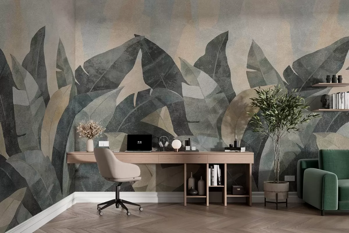 Fototapetak texturált banánlevelek a bézs, zöld és szürke természetes árnyalataiban Nr. w04285
