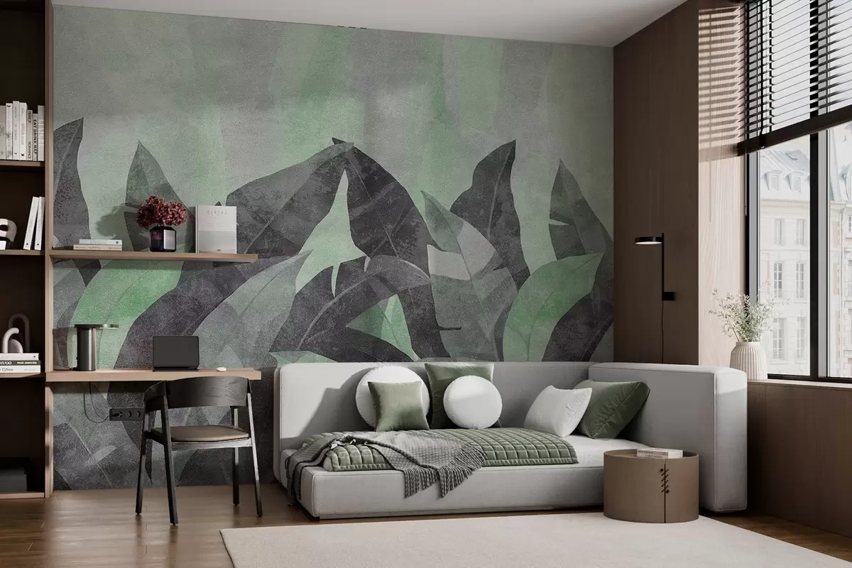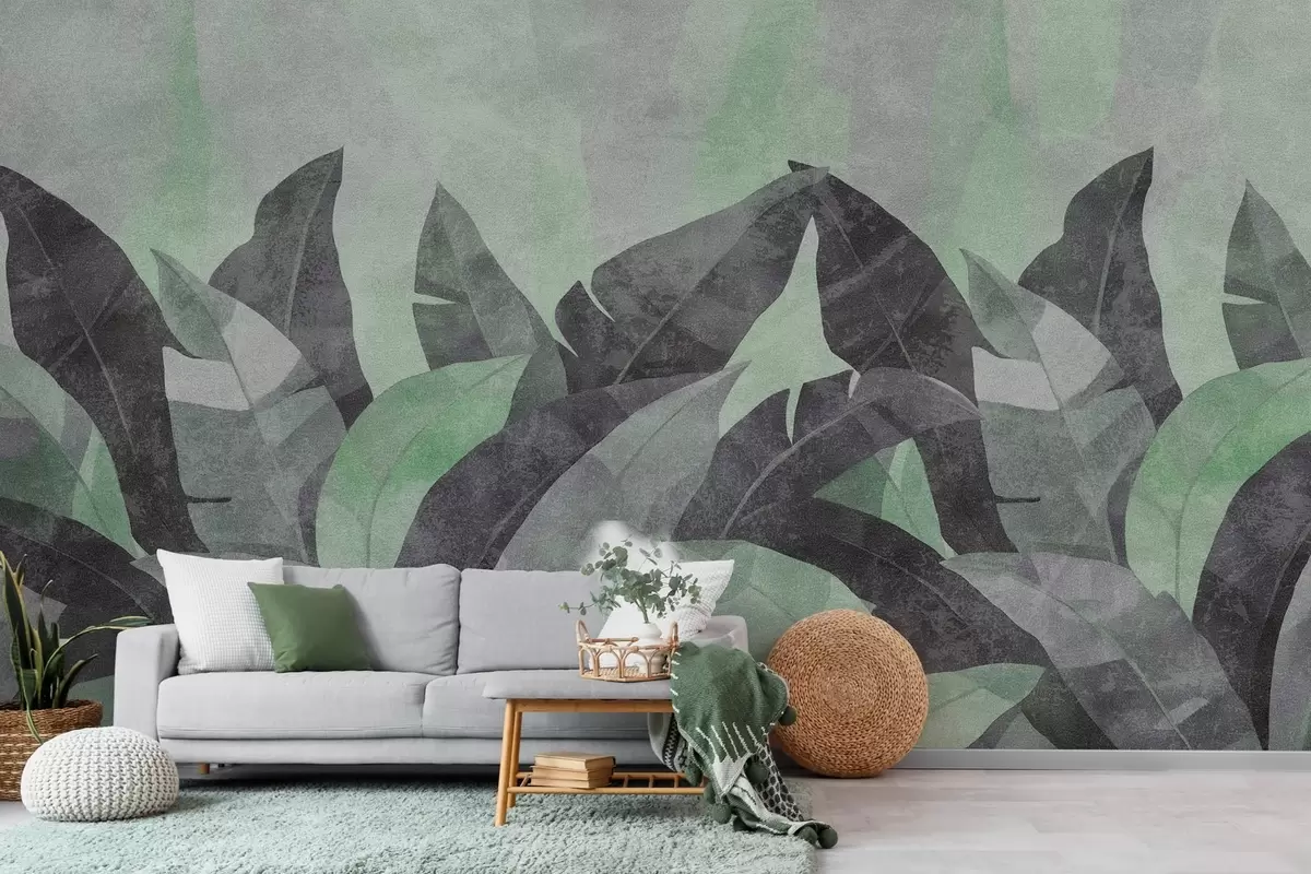 Fototapetak texturált banánlevelek a zöld és a szürke árnyalataiban Nr. w04285v1