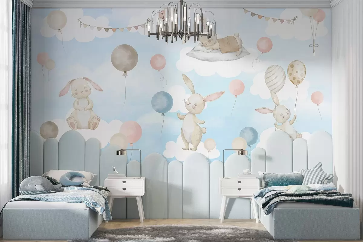 Fototapetak Nyulak léggömbökkel a felhőkön Nr. w04337