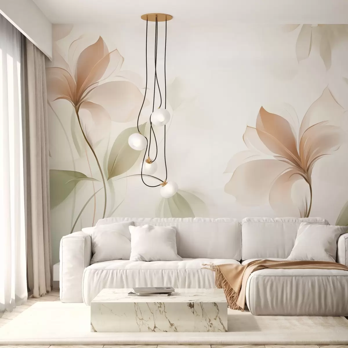 Fototapetak Átlátszó virágok meleg bézs és rózsaszín tónusokban Nr. w04397