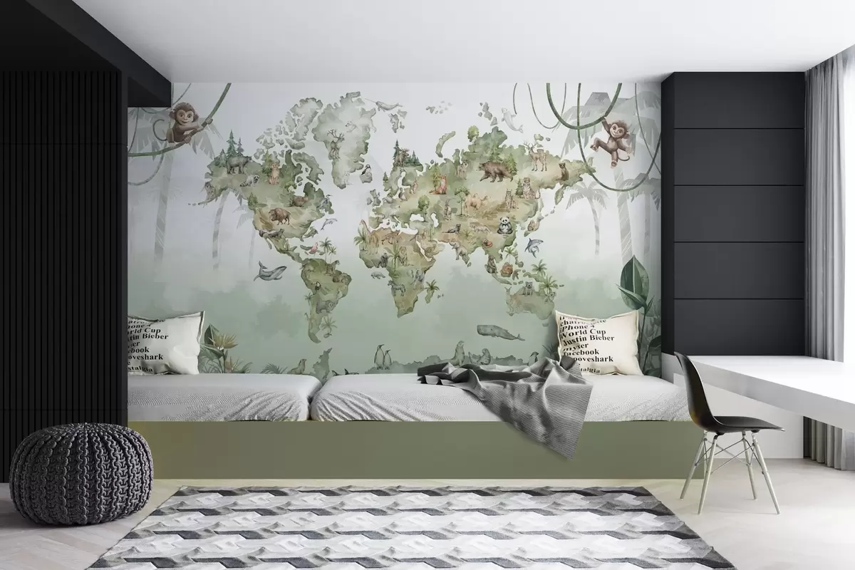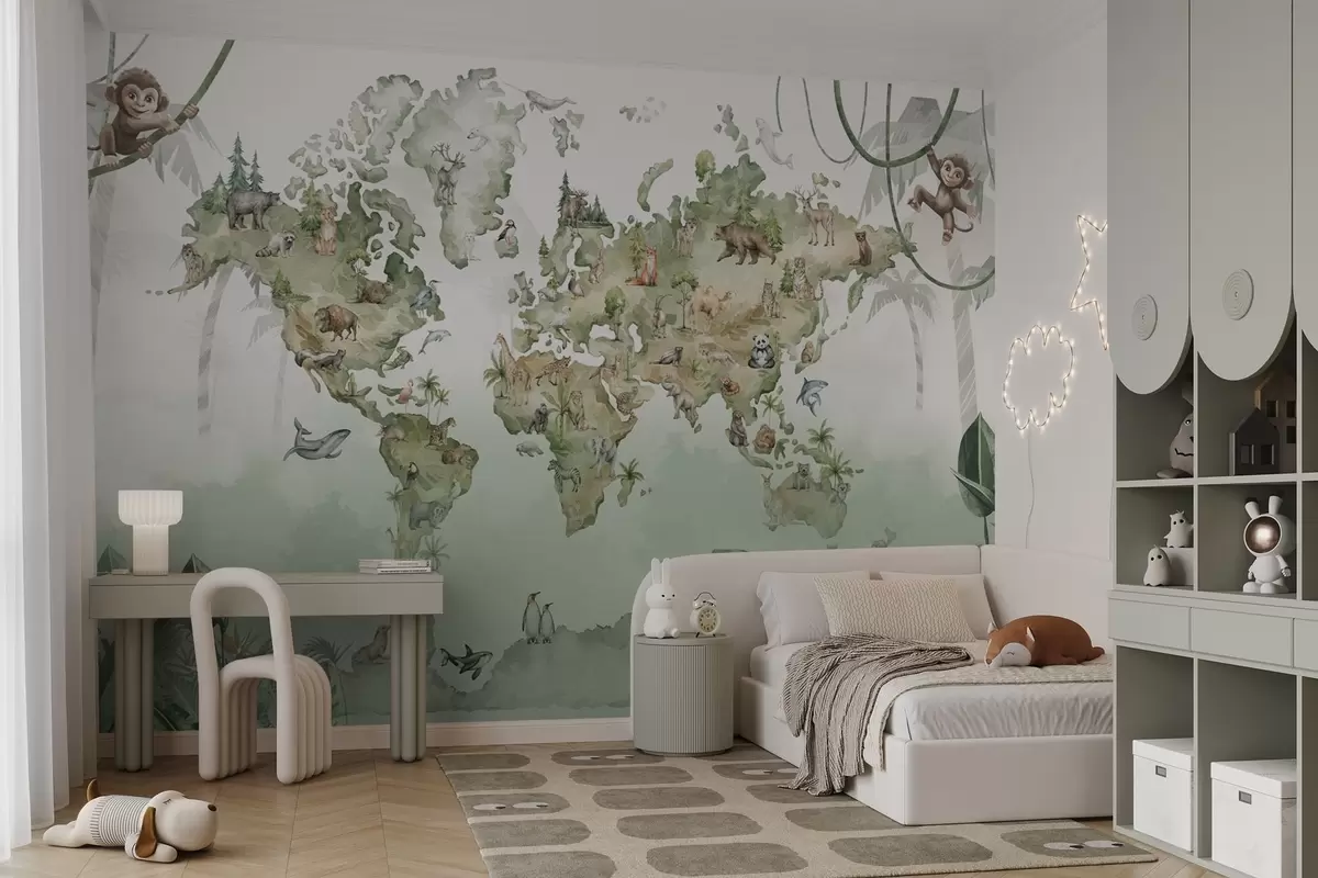 Fototapetak Akvarell stílusú világtérkép állatokkal Nr. w04418