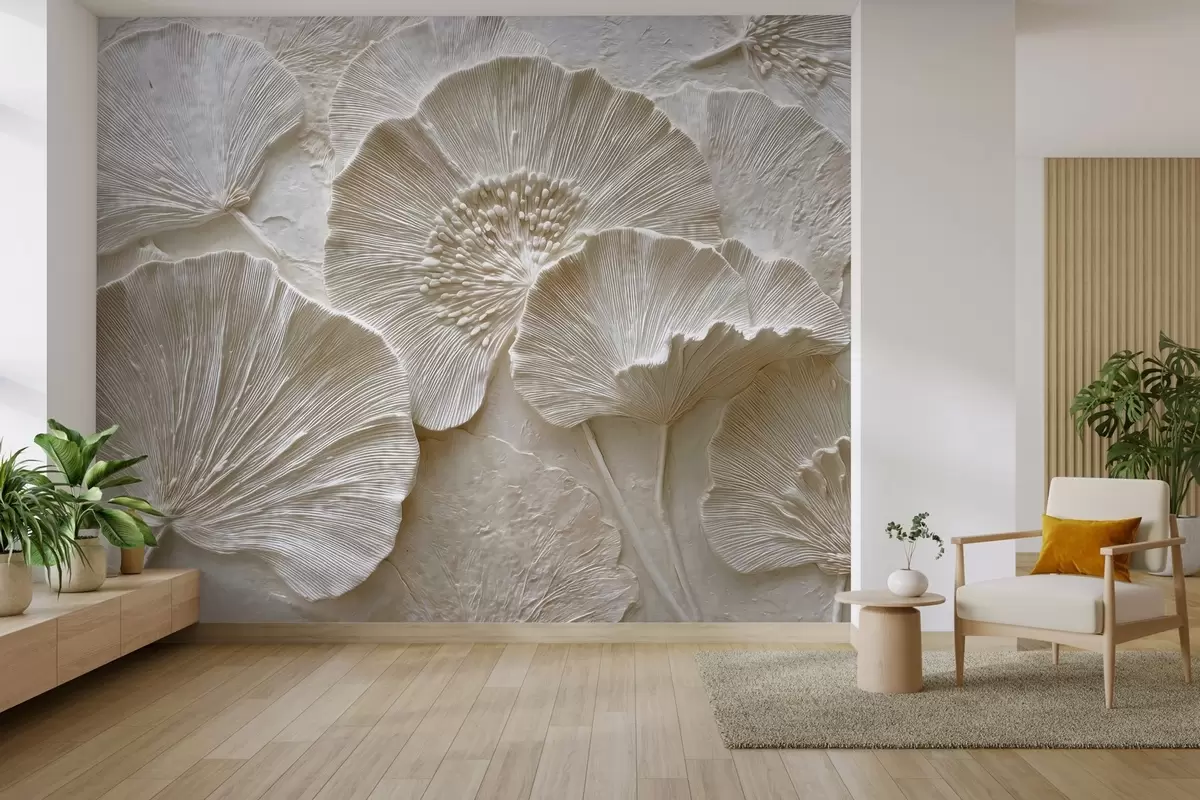 Fototapetak Volumenes ginkgo levelek könnyű dombornyomott stílusban Nr. w04444