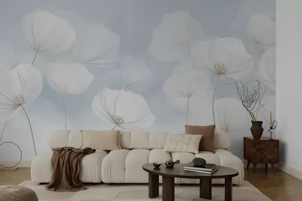 Fototapetak Légies fehér virágok kék háttér előtt Nr. w04580