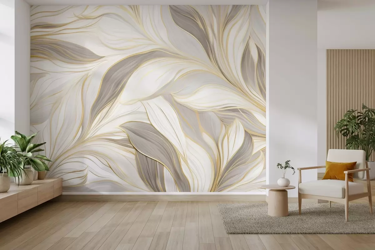 Fototapetak Sima íves levelek világos bézs-szürke árnyalatokban Nr. w04609