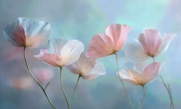 Fototapetak Átlátszó szirmok pasztell rózsaszín és kék árnyalatokban Nr. w04621