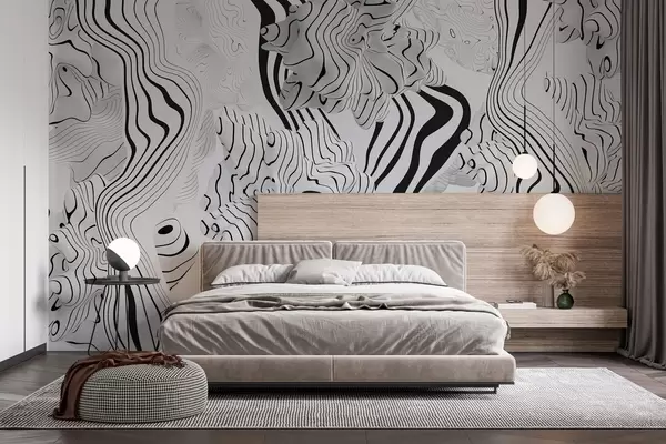 Fototapetak absztrakt organikus formák 3D stílusban, fehér és szürke árnyalatokban, fekete csíkokkal Nr. w04627