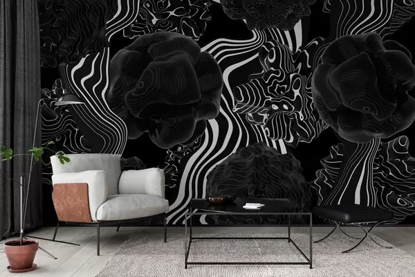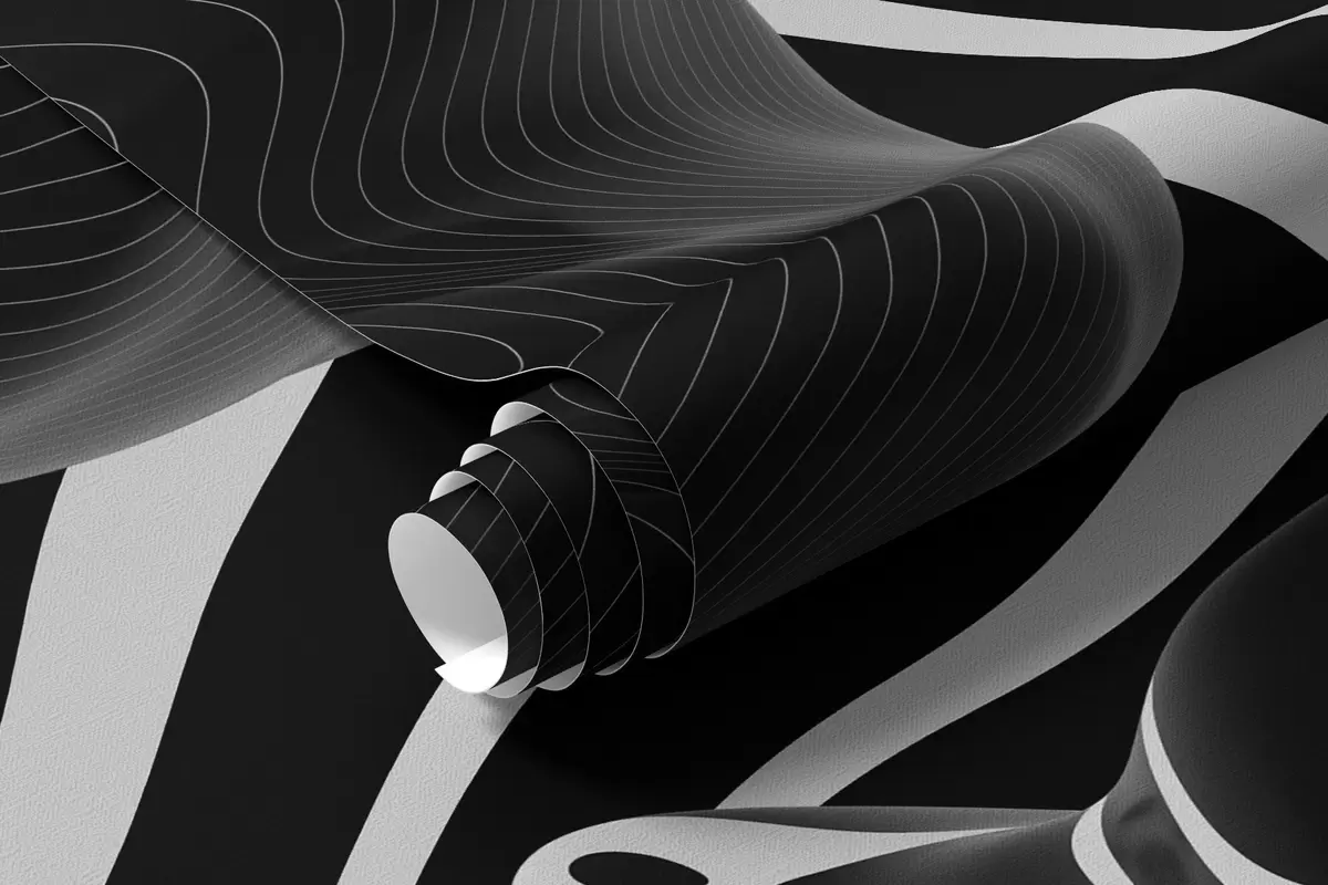 Fototapetak absztrakt organikus formák 3D stílusban, fekete tónusokban, fehér csíkokkal Nr. w04628