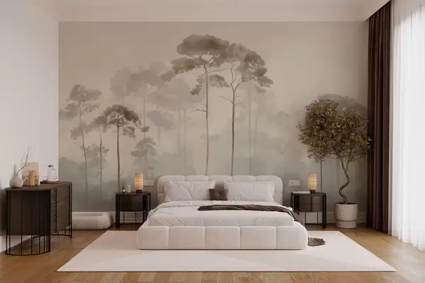 Fototapetak akvarell stílusú, világos fenyőfa sziluettek Nr. w04634