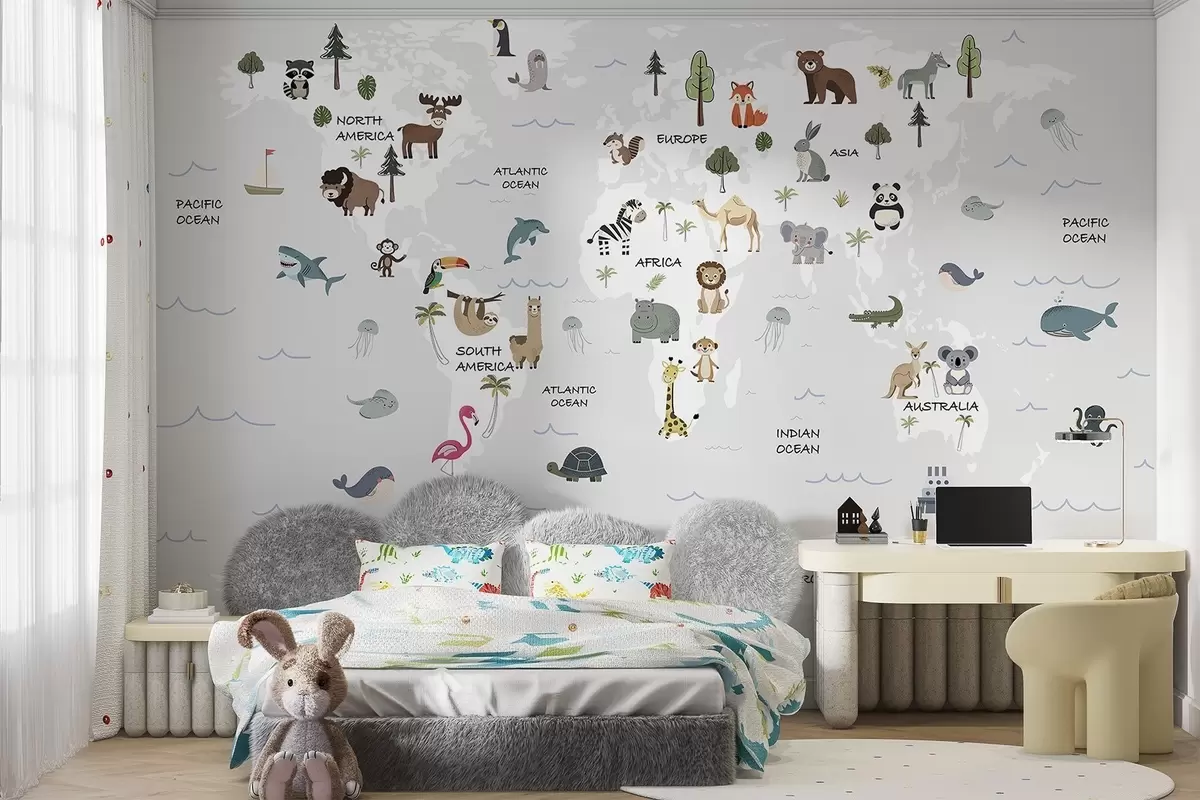 Fototapetak Világtérkép állatokkal Nr. w04663
