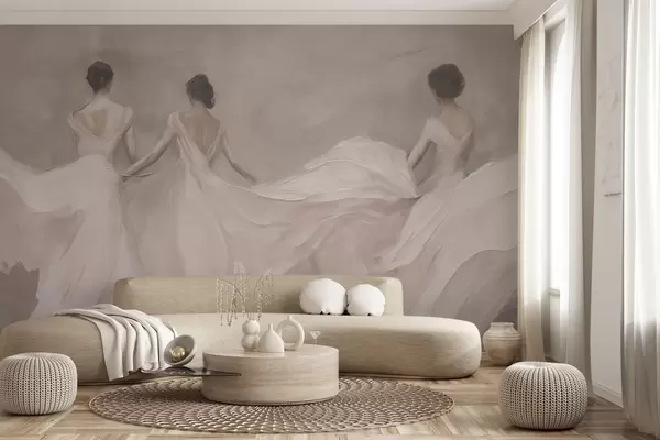 Fototapetak Három nő rózsaszín ruhában, lebegő anyag, puhaság Nr. w04709