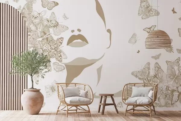 Fototapetak Arc sziluettje pillangók között Nr. w04778v2
