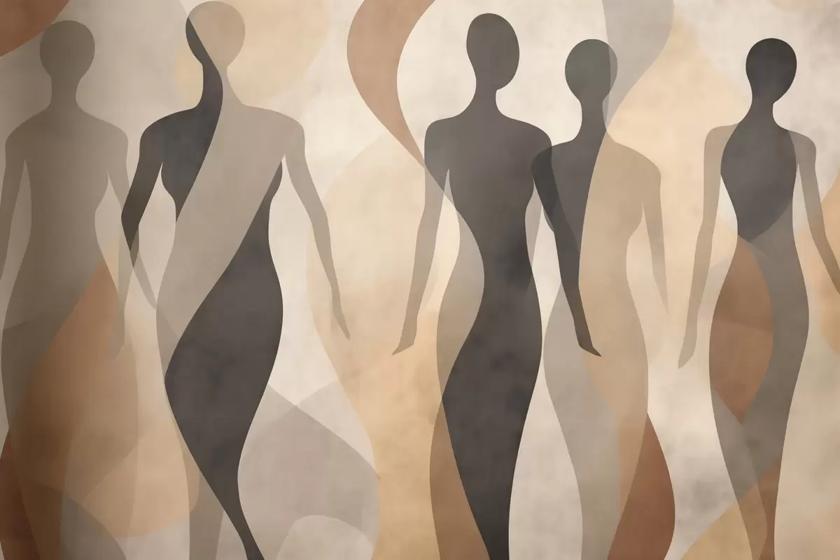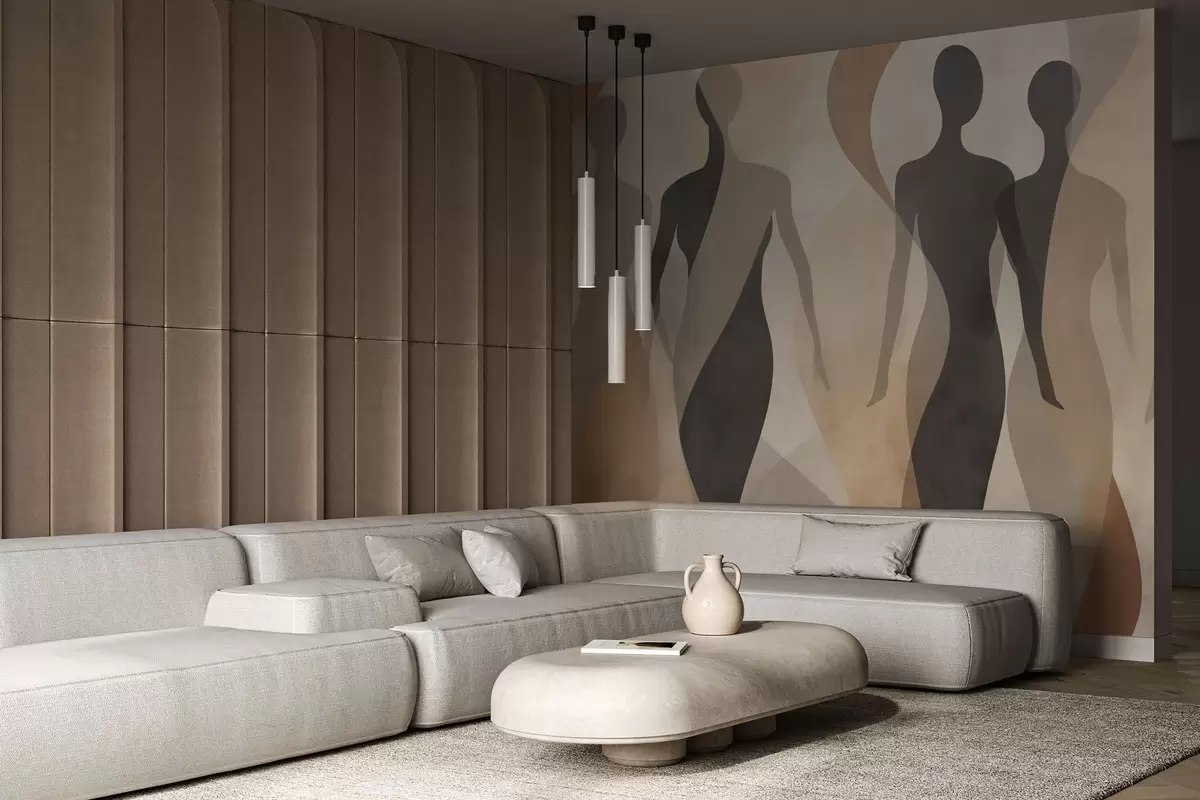 Fototapetak Sziluett alakok és lágy hullámok meleg bézs-szürke tónusokban Nr. w04787