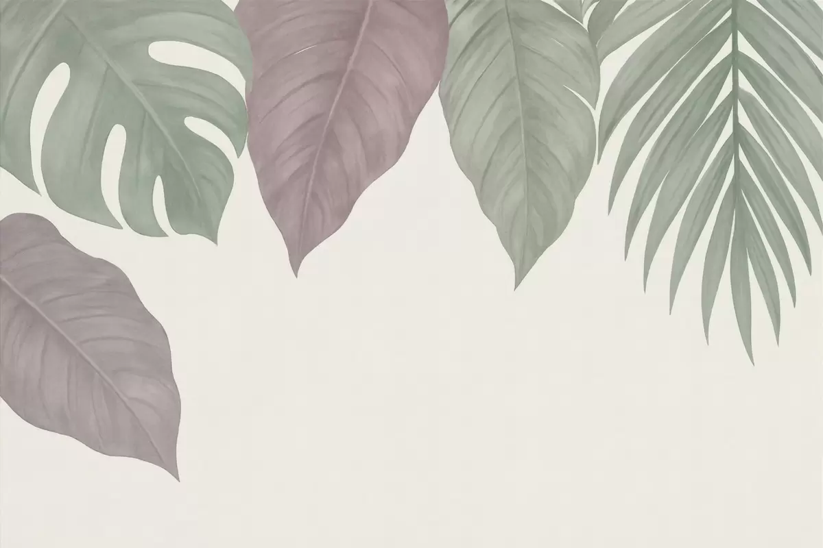Fototapetak nagy trópusi levelek egyszerű stílusban, felülről nézve Nr. w04819