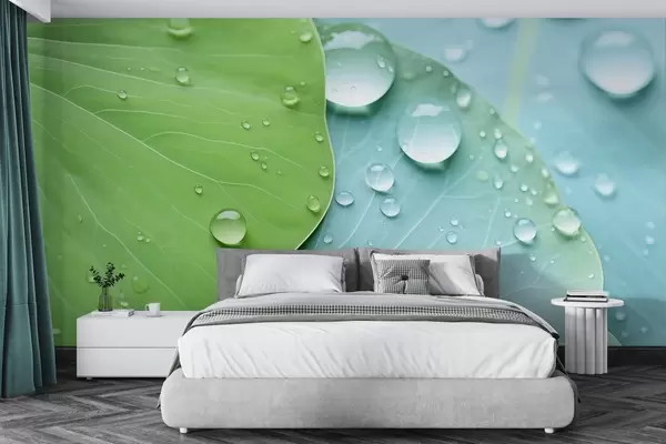 Fototapetak Vízcseppek a leveleken makro akvarell Nr. w04838